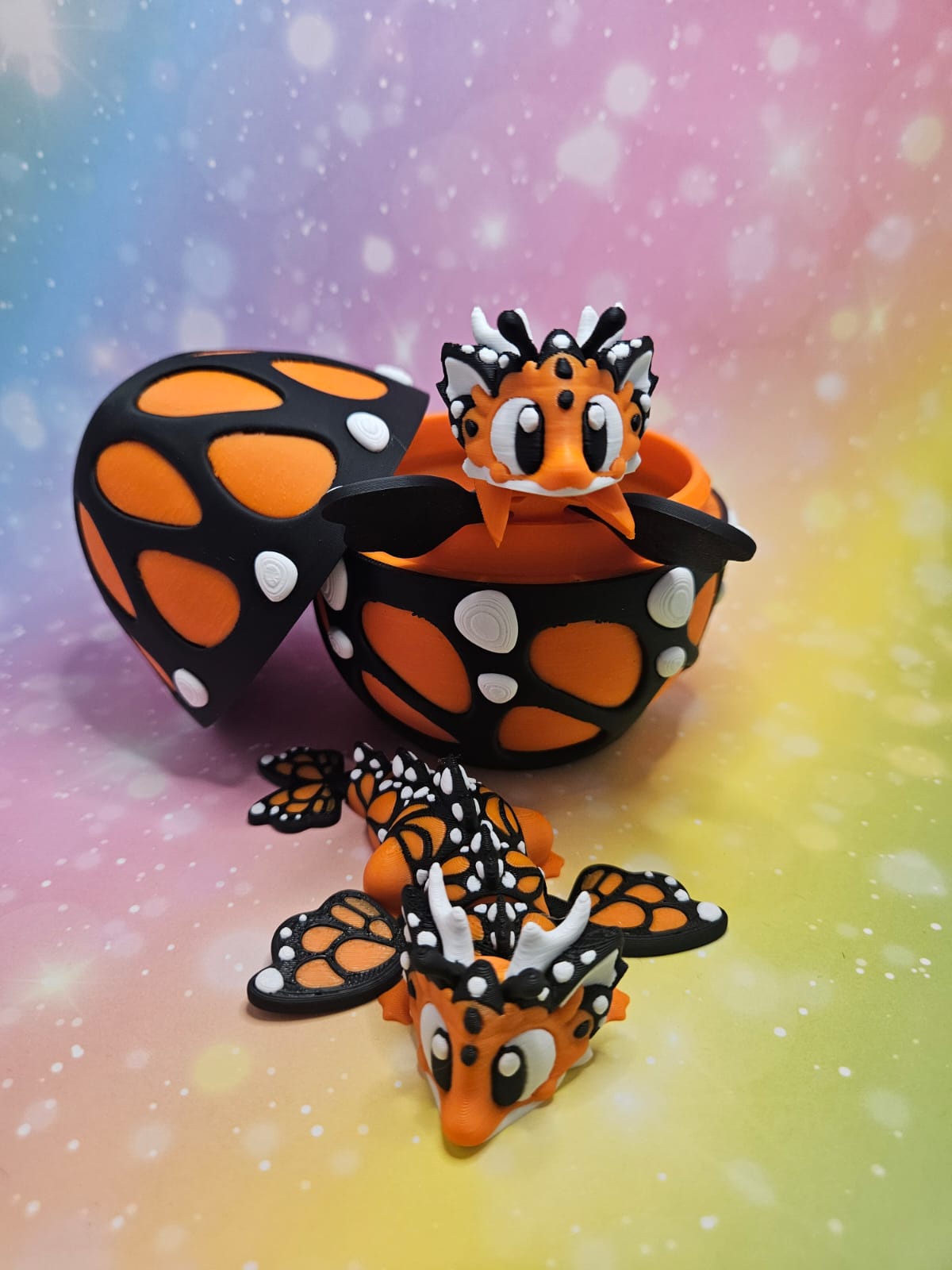 Gefertigt aus umweltfreundlichem PLA-Filament ist das Modell robust, nachhaltig und farbintensiv. Ob auf dem Schreibtisch, im Kinderzimmer oder als besonderes Geschenk – dieser kleine Schmetterlingsdrache mit Ei sorgt garantiert für gute Laune.