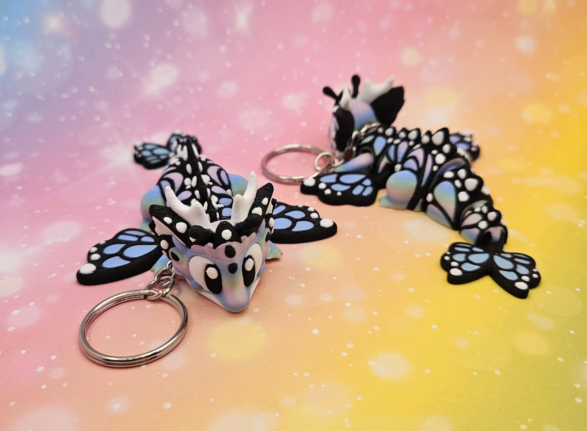Mach deinen Schlüsselbund magisch! Der Flexi-Drache Schmetterlingsdrache ist ein beweglicher, detailreich gestalteter 3D-gedruckter Schlüsselanhänger. Seine flexiblen Glieder machen ihn besonders lebendig, und durch den stabilen Schlüsselring begleitet er dich überall hin.
