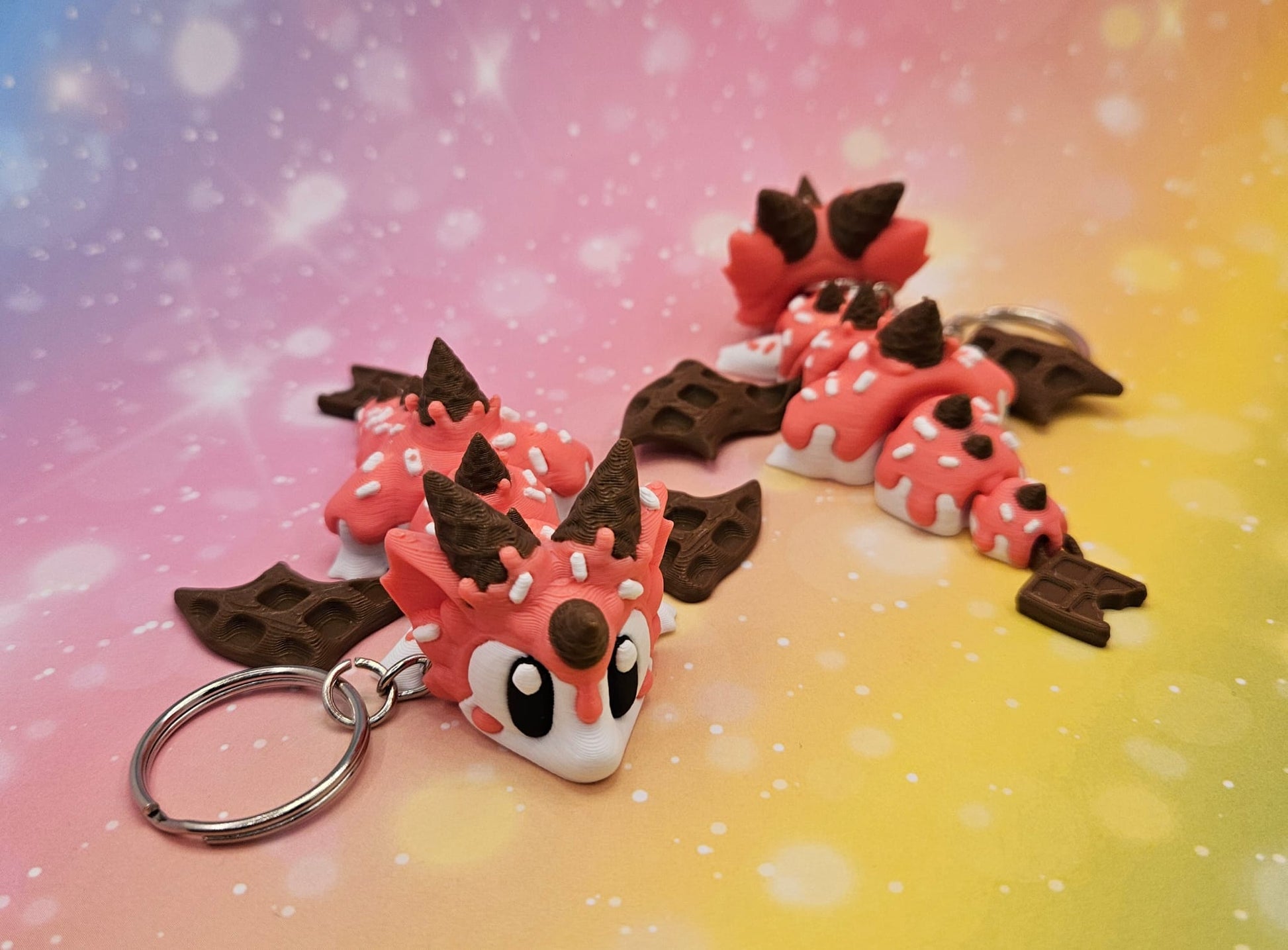 Mach deinen Schlüsselbund magisch! Der Flexi-Drache Waffeldrachen ist ein beweglicher, detailreich gestalteter 3D-gedruckter Schlüsselanhänger. Seine flexiblen Glieder machen ihn besonders lebendig, und durch den stabilen Schlüsselring begleitet er dich überall hin.