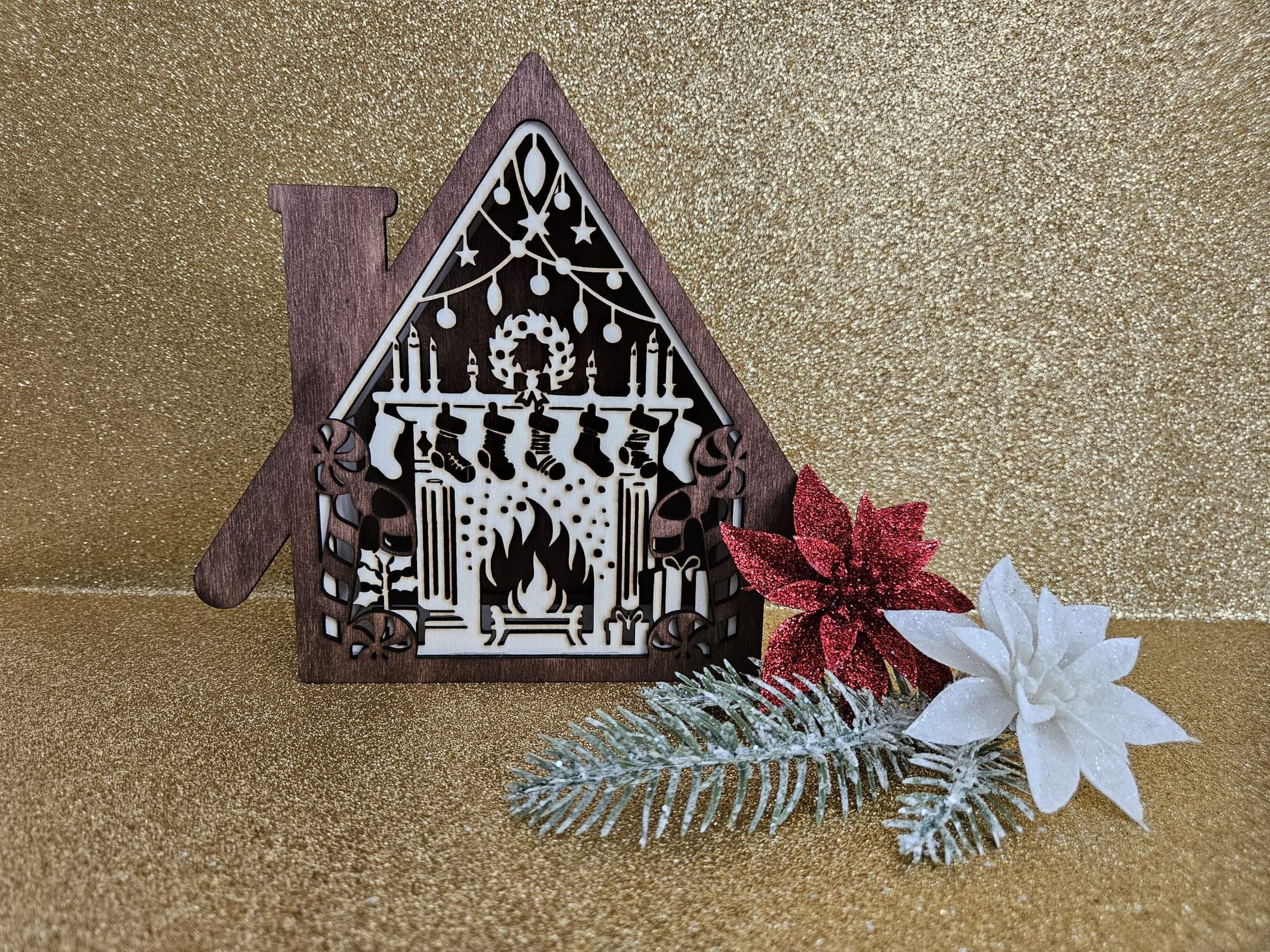 Weihnachtliches Kaminhaus aus gelasertem Sperrholz